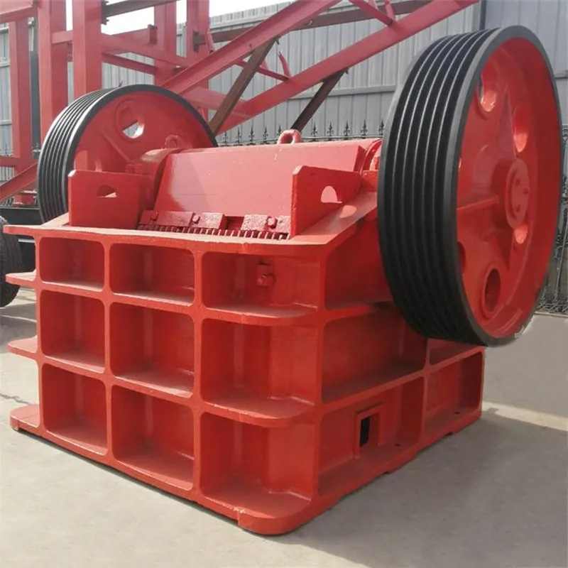 采用楔塊排料口調節系統,使機器即使在空轉情況下也可以在幾分鐘之內把排料口調到預定值,在液壓系統配合下,實現自動化,比老式的墊片式排料口調節系統更簡單、安全、快捷。軸承座采用整體式鑄鋼結構,避免兩片式軸承室給機架帶來的不必要負擔,提高整機結構的穩定性。此外重型偏心軸采用鍛坯進行加工,使PE系列顎式破碎機結構更穩定,性能更可靠。