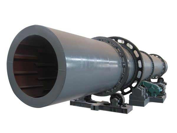 1)筒體:(本機主體)用12~20mm鋼板制成,分為前段—預熱段,筒內壁裝有螺旋葉片。主要用以防止剛進入機內的濕料發粘堵料。螺旋板起到推送料和翻料打散物料,使水份易散發排出作用;中段—烘干段,筒體內壁裝有多塊揚料炒板,它不但起到翻炒物料,使物料受熱烘烤均勻,且揚起物料使水分易于散發脫離物體。而且還與筒體一起旋轉至上半部被上層熱氣流加熱,轉到底部時再將熱傳導加熱物料。周而復始,起熱傳導作用,是本產品烘烤物料快干、節能、減少熱耗的特點;后段—冷卻段,筒體內光壁沒了揚料板的熱傳導和翻炒,物料靜靜慢慢地在底部冷卻后從出料口流出。
